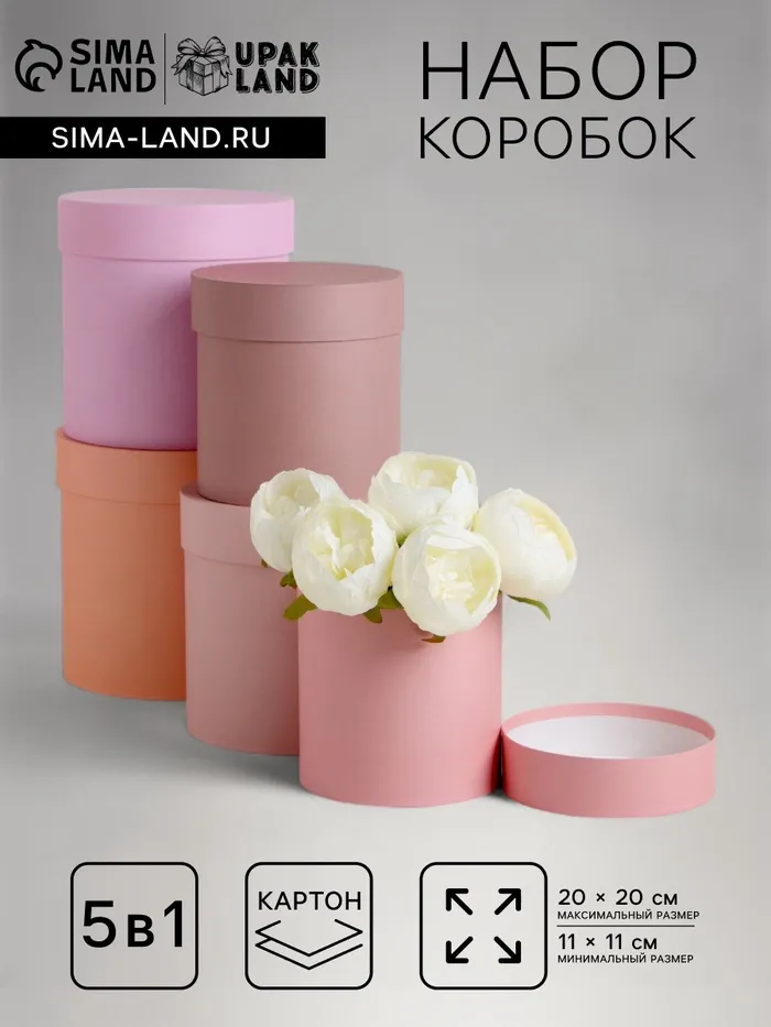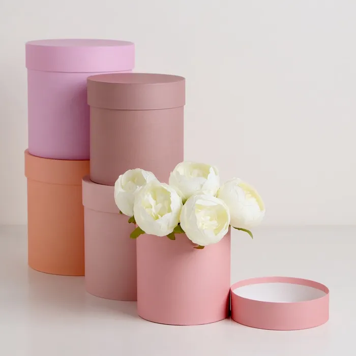 Набор круглых подарочных коробок 5 в 1 «Крема», 20×20×20- 11×11×11 см — Характеристики
