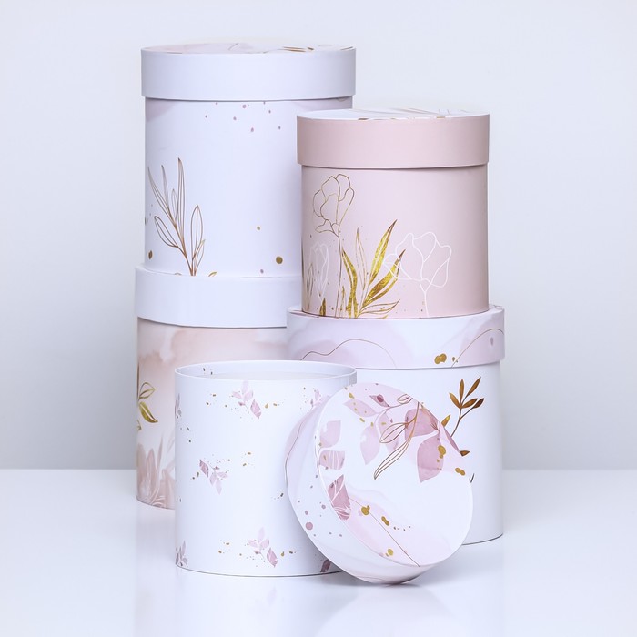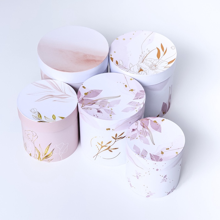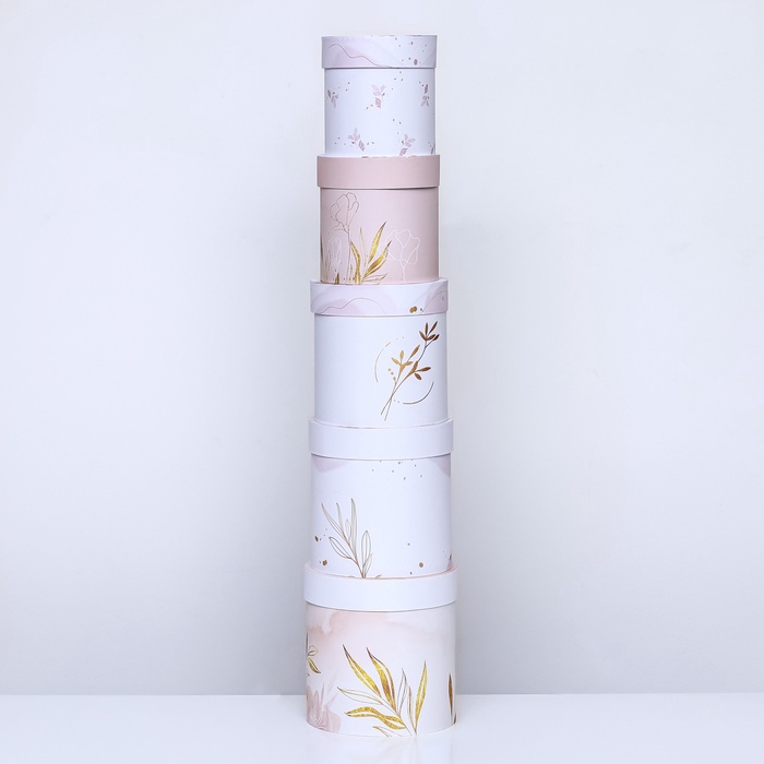 Набор круглых подарочных коробок 5 в 1 «Нежный образ», 20×20 -14×14 см — Характеристики