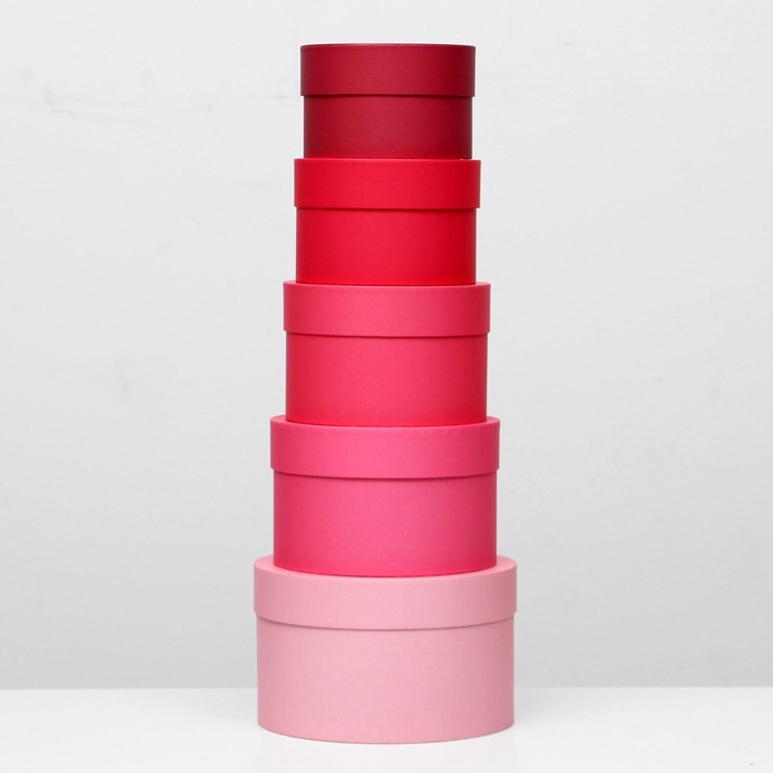 Набор круглых подарочных коробок 5 в 1 «Пантон 200», однотонный, 23×23×14 - 15×15×10 см — Характеристики