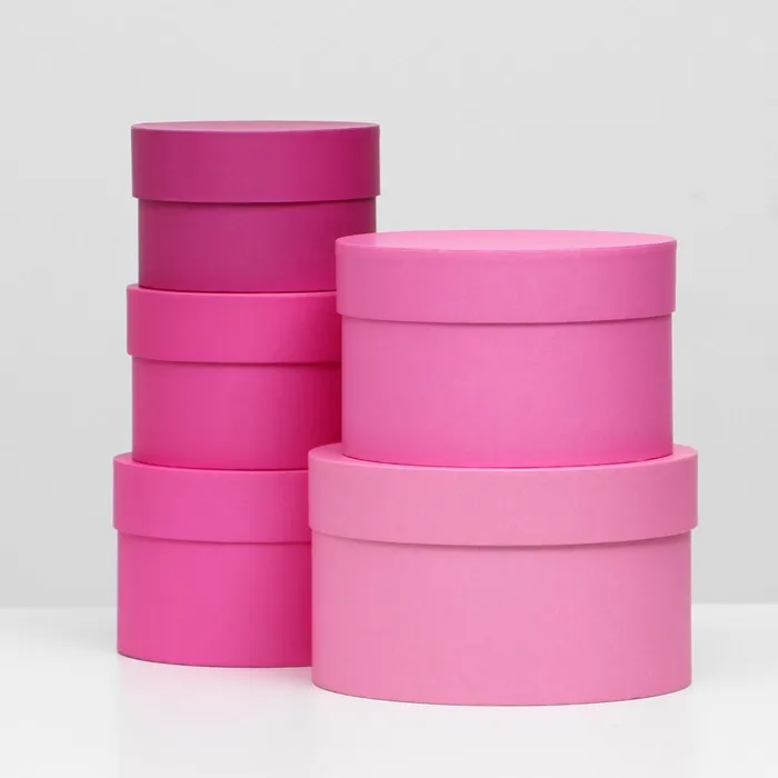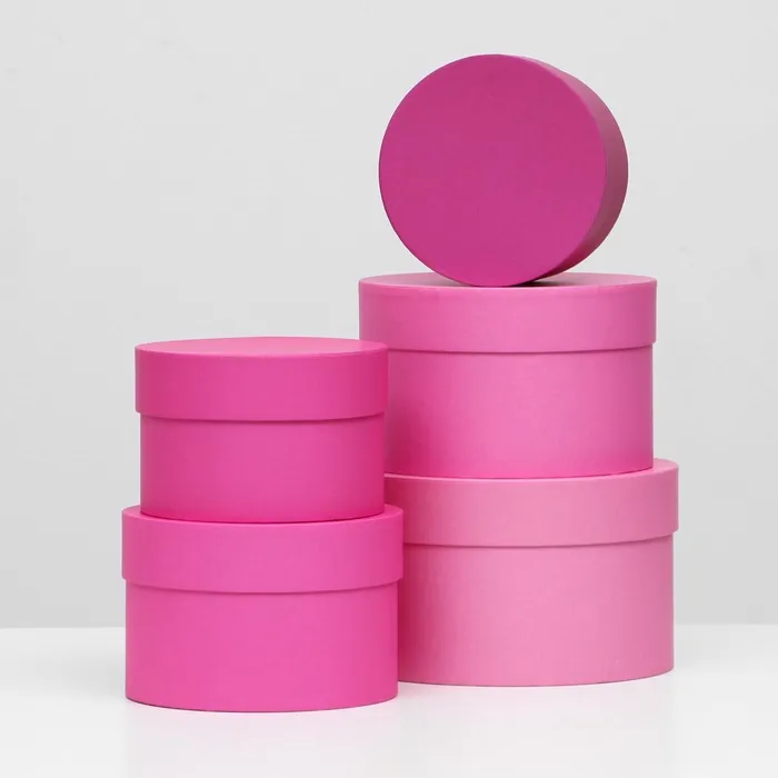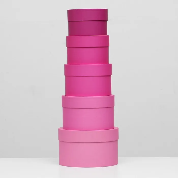 Набор круглых подарочных коробок 5 в 1 "Пантон 230 - однотонный", 23×23×14 - 15×15×10 см — Характеристики