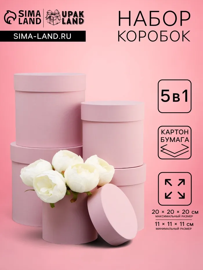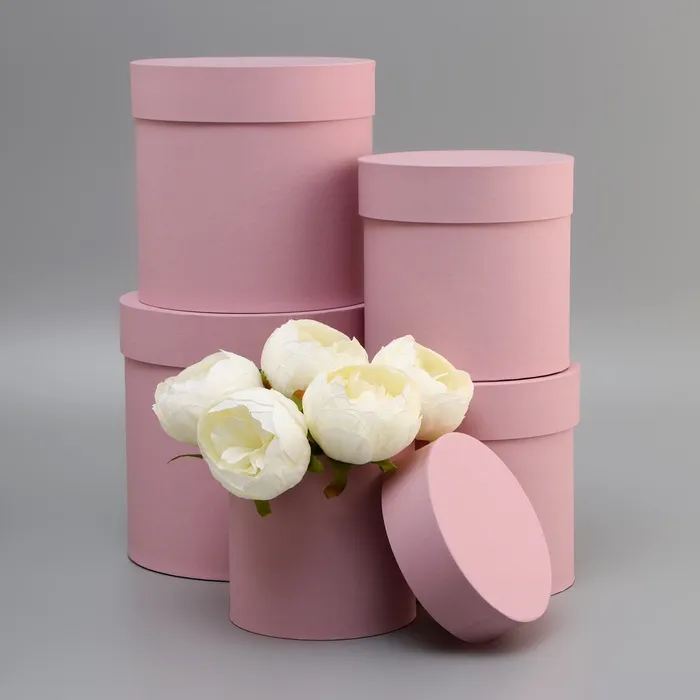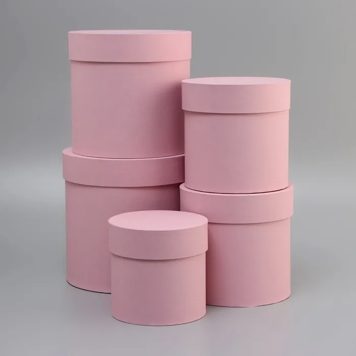 Набор круглых подарочных коробок 5 в 1 «Пыльная роза», 20×20×20 - 11×11×11 см см — Характеристики