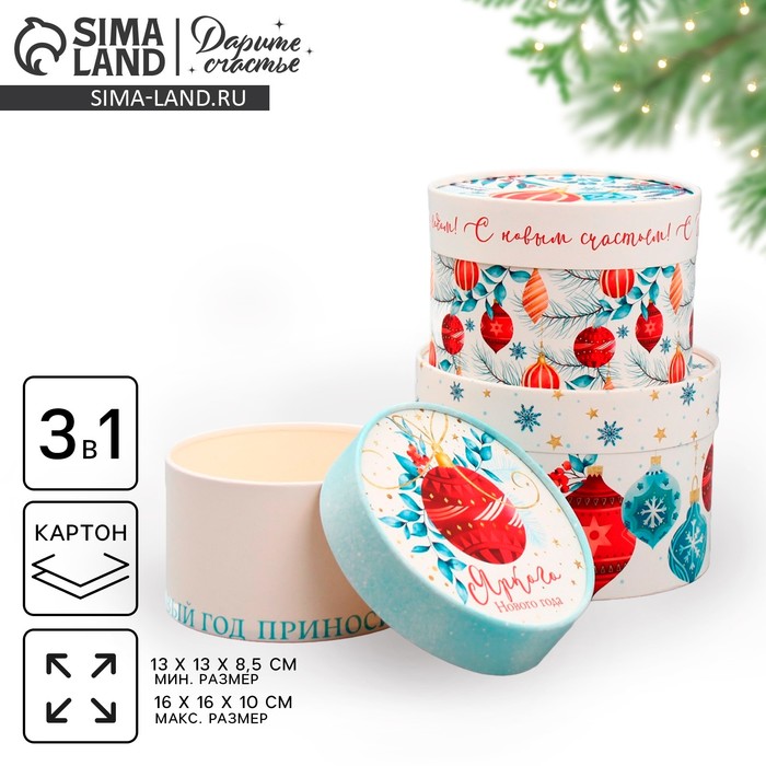 - Две коробки в одном наборе: В комплекте — круглая коробка диаметром 16 см и вторая, диаметром 13 см. Они удобно вкладываются друг в друга для хранения или составляют двухуровневую композицию для вручения.