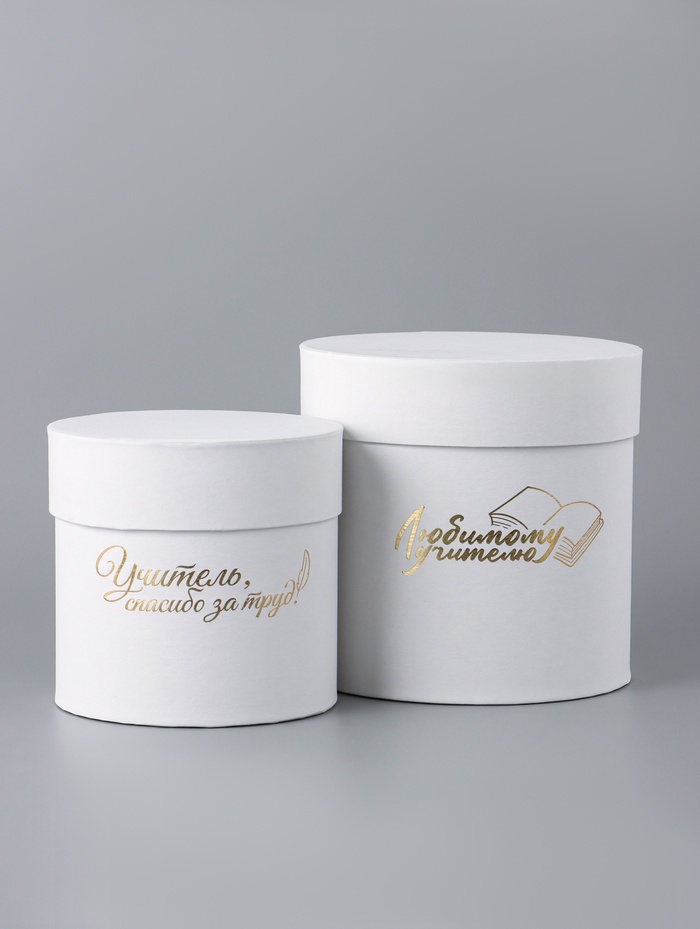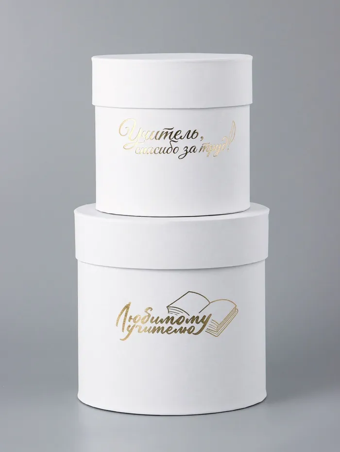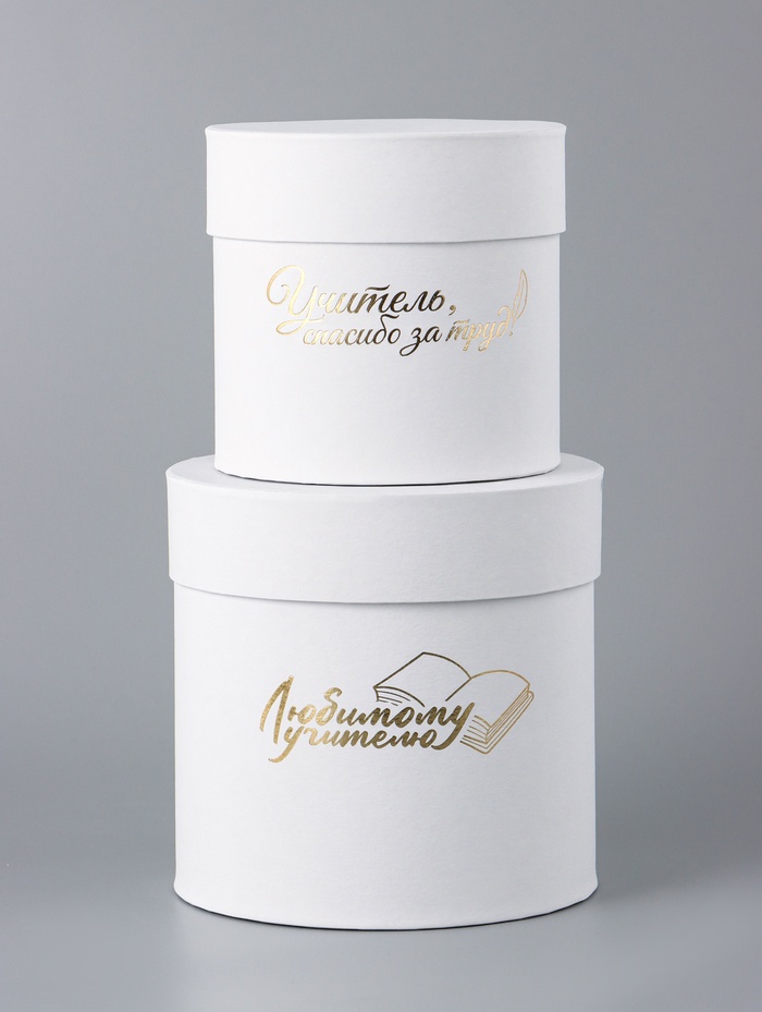 Элегантное решение для особого подарка! Набор круглых коробок «Учителю» — это классическая белая упаковка, созданная специально для Дня учителя. Комплект из двух коробок разного размера помогает красиво преподнести главный подарок и милые дополнения к нему.
