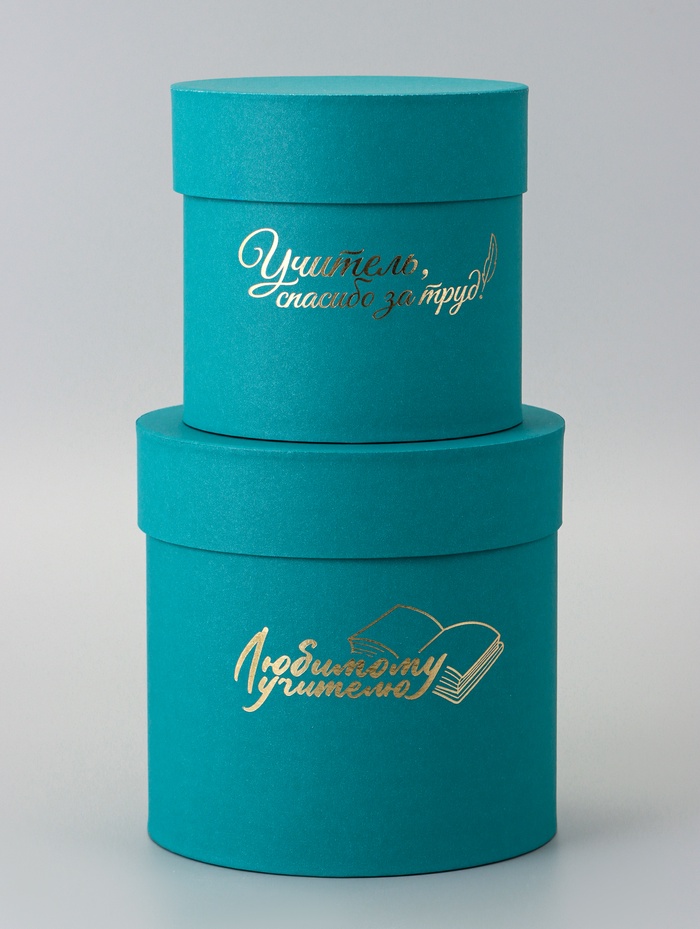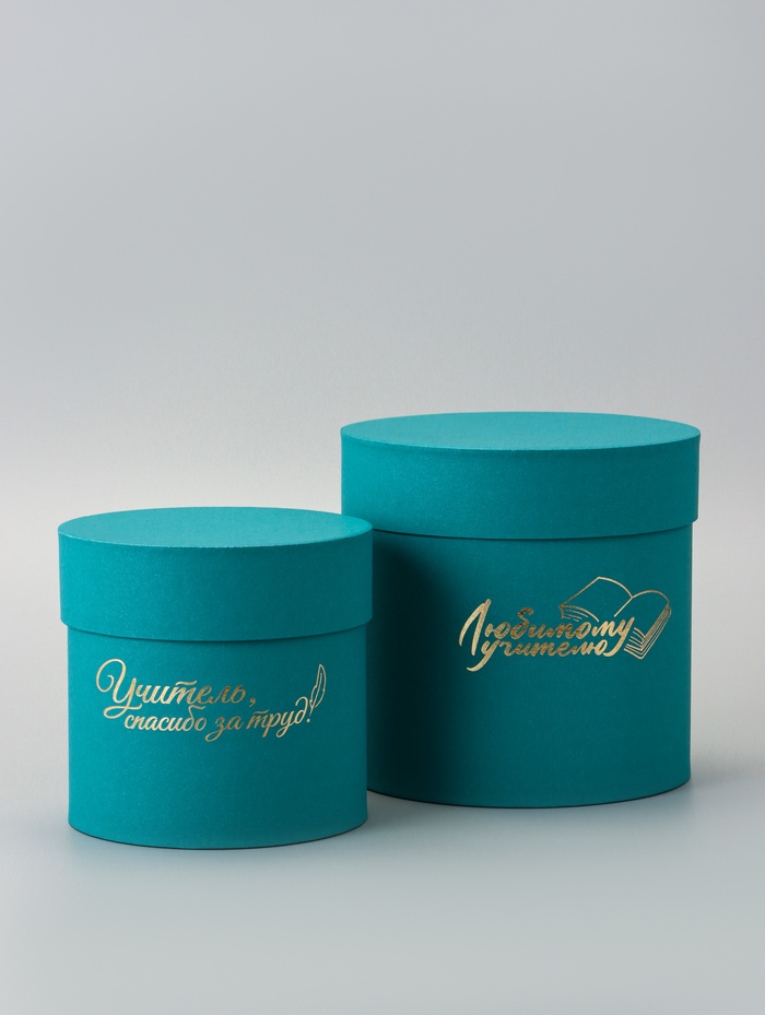 Сделайте подарок учителю безупречным! Набор круглых коробок «Учителю» в изумрудном цвете — это элегантная упаковка для праздничного презента. Комплект из двух коробок помогает собрать воедино главный сюрприз и дополнительные знаки внимания.