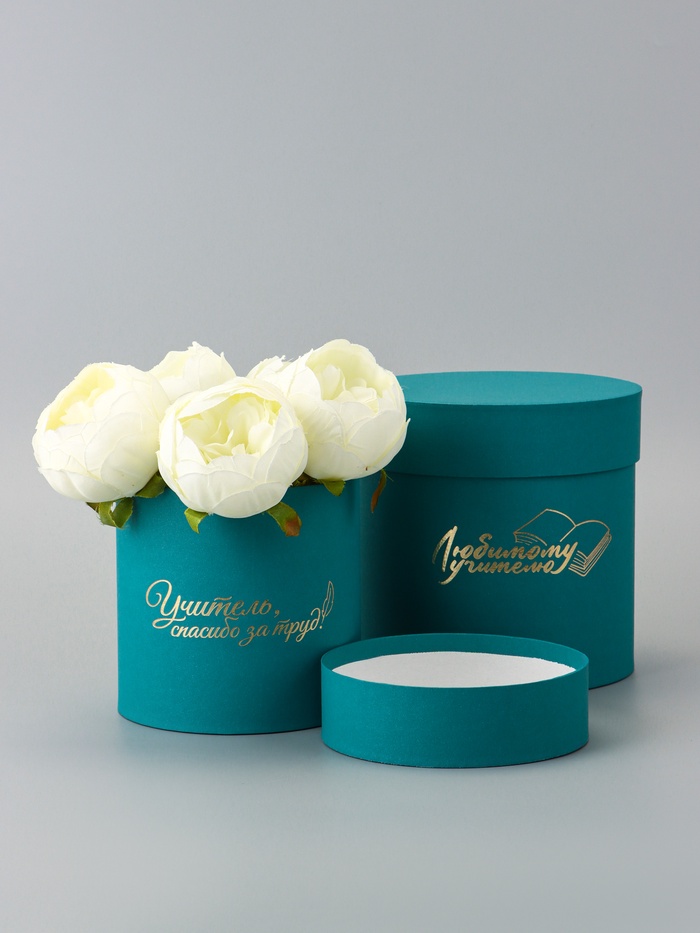 Сделайте подарок учителю безупречным! Набор круглых коробок «Учителю» в изумрудном цвете — это элегантная упаковка для праздничного презента. Комплект из двух коробок помогает собрать воедино главный сюрприз и дополнительные знаки внимания.