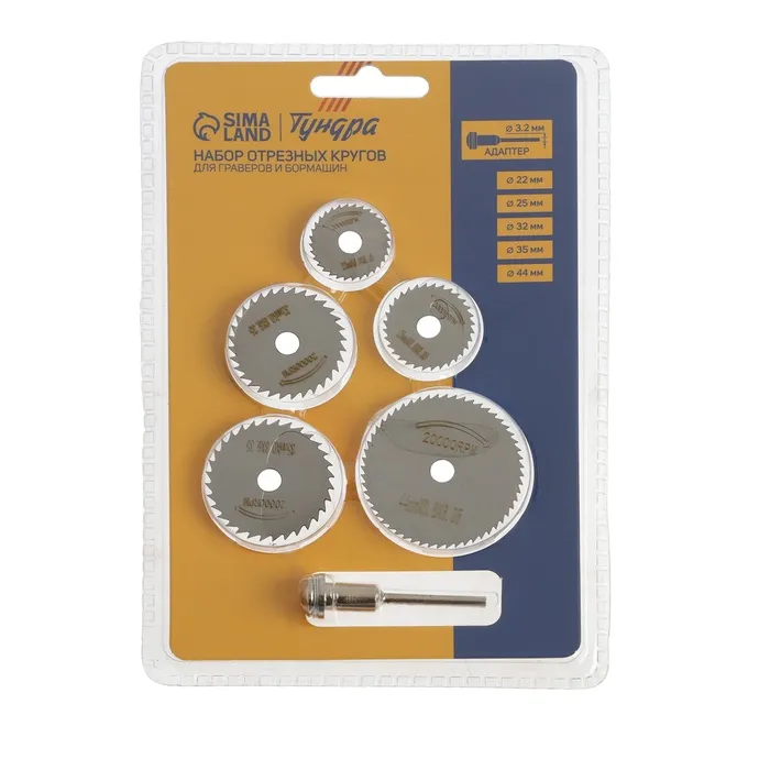 Набор кругов отрезных для граверов и бормашин ТУНДРА, 5 насадок и адаптер 3.2 мм — Характеристики