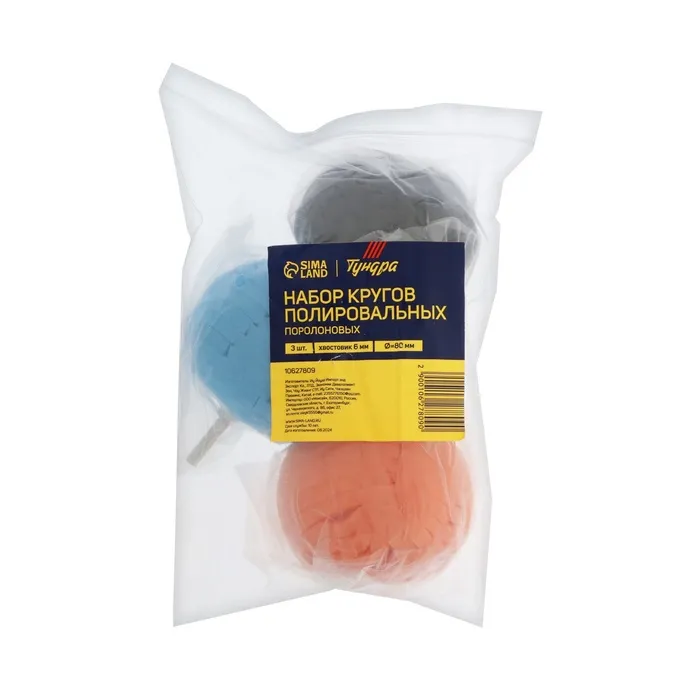 Набор кругов полировальных ТУНДРА, поролоновых, d=80 мм, хвостовик 6 мм, 3 шт. — Характеристики