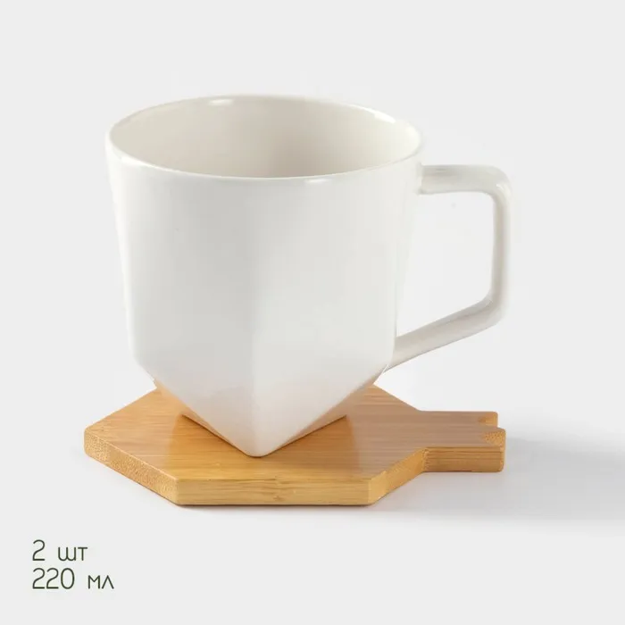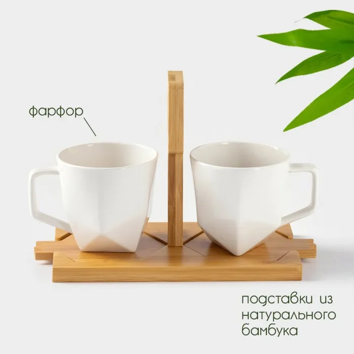 Набор кружек BellaTenero, 220 мл, 2 шт., на бамбуковых подставках, белый — Характеристики