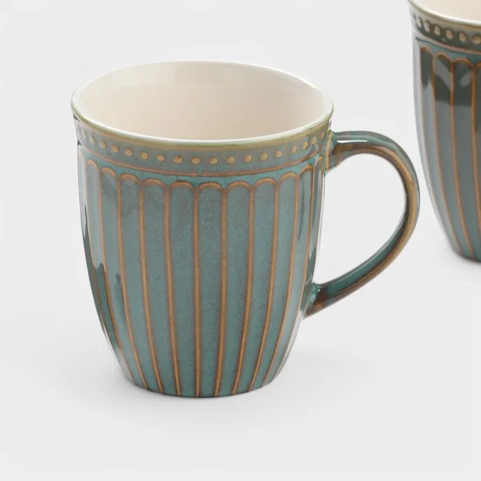 - Стильный дизайн: винтажный узор и синий оттенок делают кружки не только функциональными, но и эстетически привлекательными.