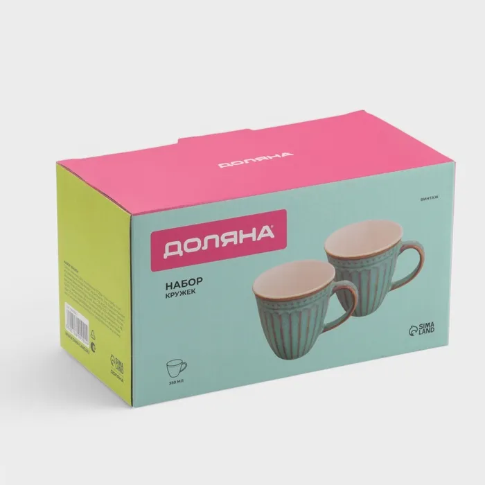 Набор кружек Доляна «Винтаж», 350 мл, 2 шт., керамика, синий — Характеристики