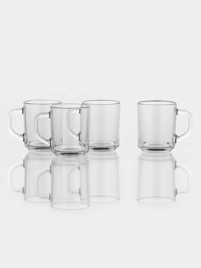 Набор из четырёх прозрачных стеклянных кружек готов к использованию и в подарок. Без лишних аксессуаров, без избыточного дизайна.