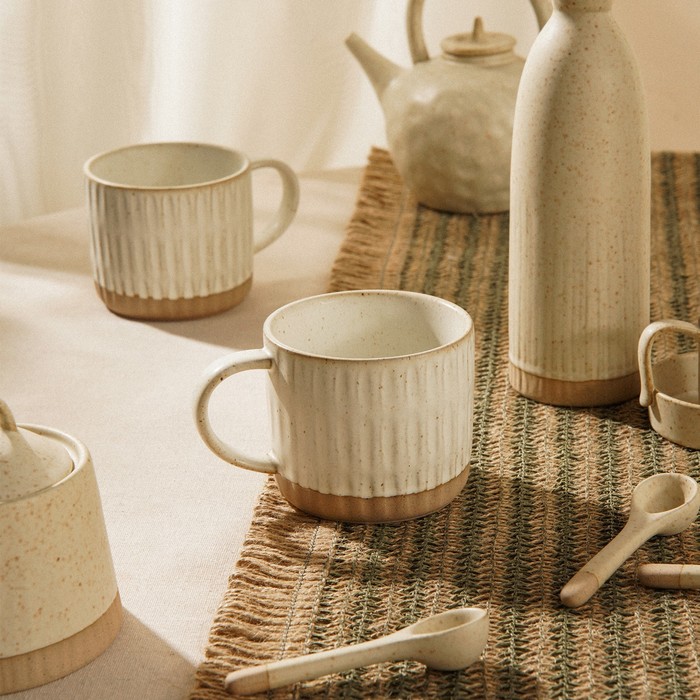 Эти кружки объемом 400 мл идеально подходят для наслаждения любимыми напитками, будь то ароматный кофе или расслабляющий чай. Выполненные в нежном бежевом цвете с рельефным рисунком полосок, они не только прекрасно смотрятся, но и приятно ложатся в руку благодаря матовой поверхности.