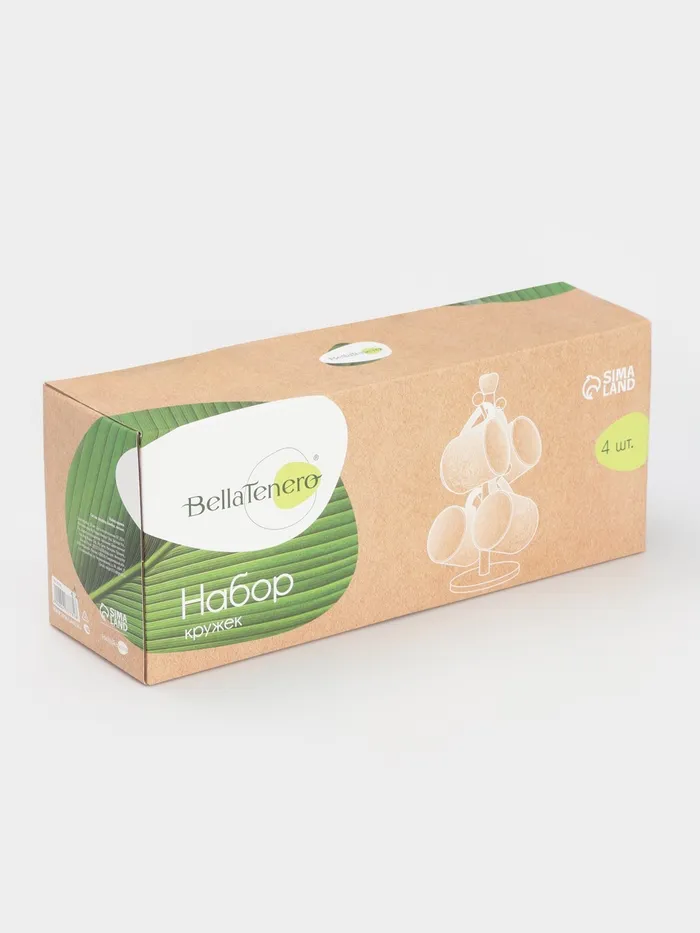 Набор кружек на деревянной подставке BellaTenero, 4 предмета: 400 мл, фарфор, белый — Характеристики