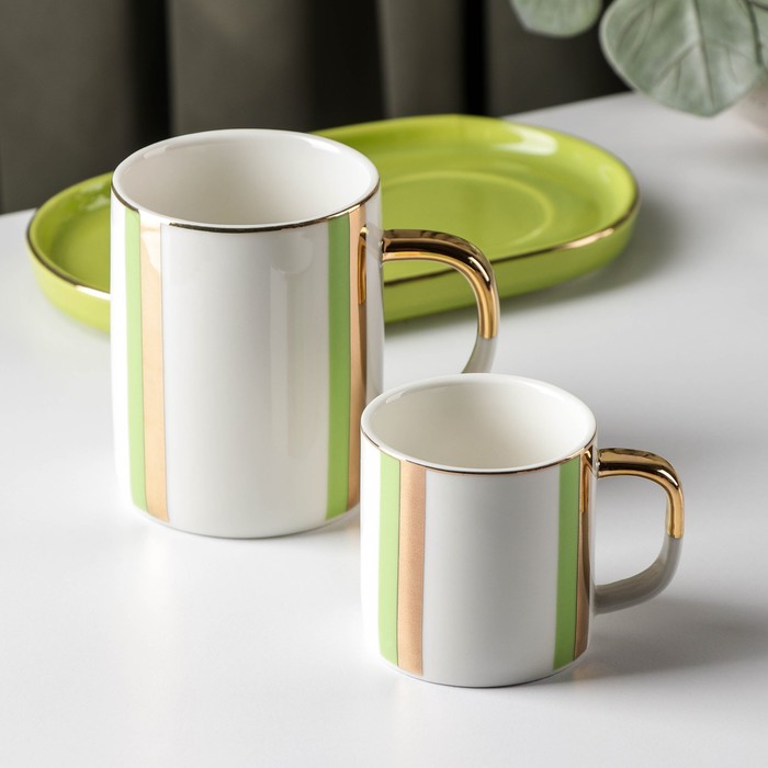 Набор кружек на керамической подставке «Геометрия», 80/200 мл, 2 шт, цвет зелёный — Характеристики