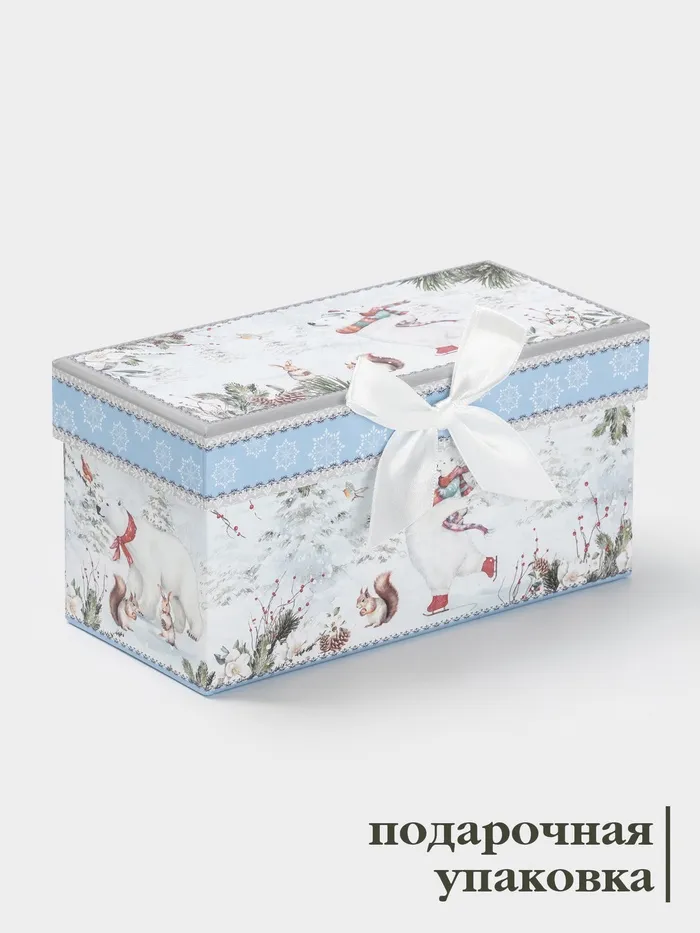 - Праздничный дизайн: белый цвет с изображением милого мишки создает атмосферу сказки и уюта, идеально подходящую для зимних праздников.