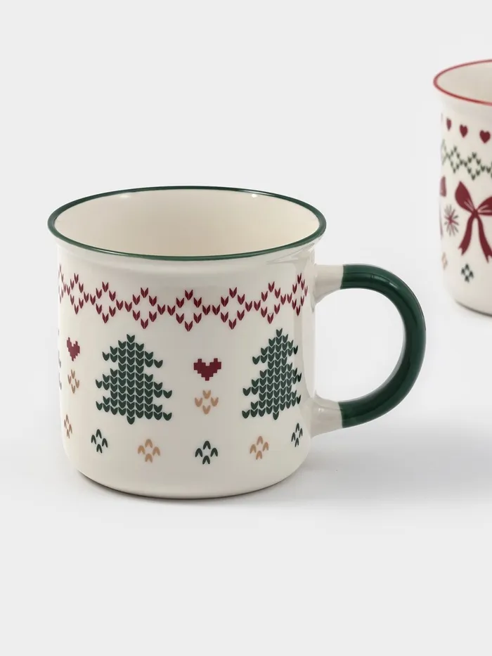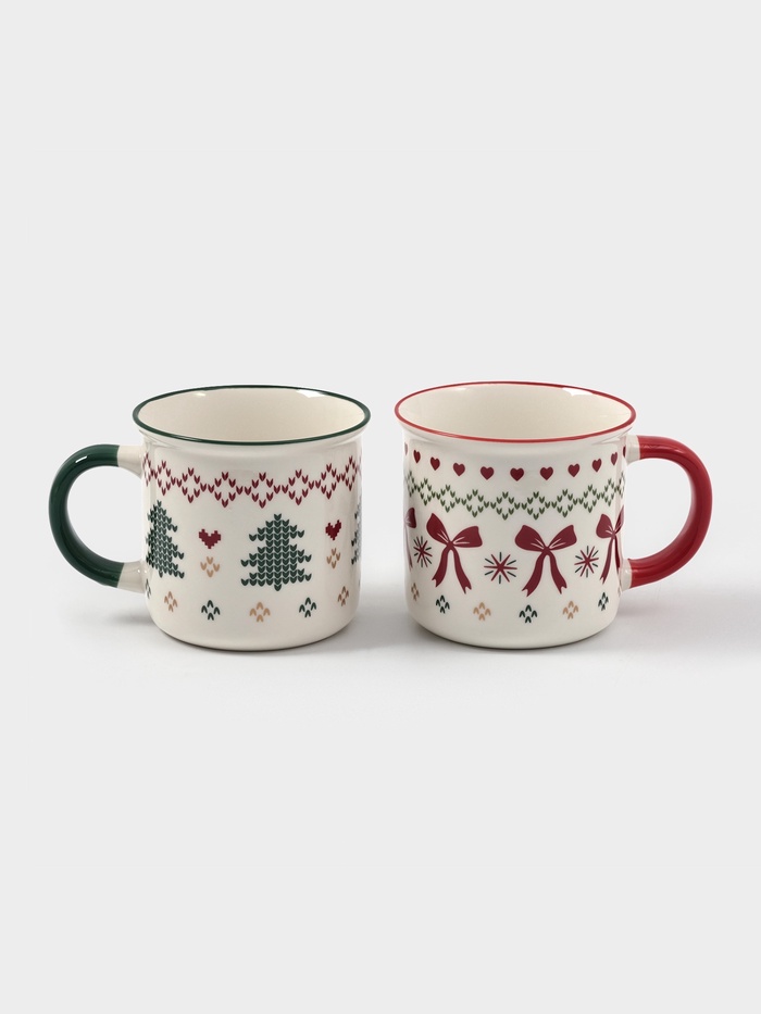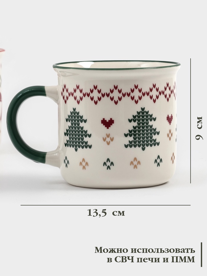 Этот парный набор фарфоровых кружек создаёт атмосферу совместных зимних ритуалов. Две идентичные кружки объёмом 450 мл подходят для парного чаепития с какао, глинтвейном или травяными настоями. Белый фон emphasizes детали новогоднего декора, нанесённого устойчивой техникой деколь.