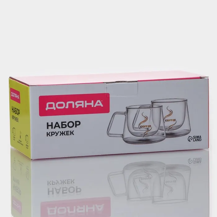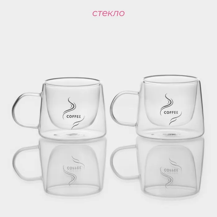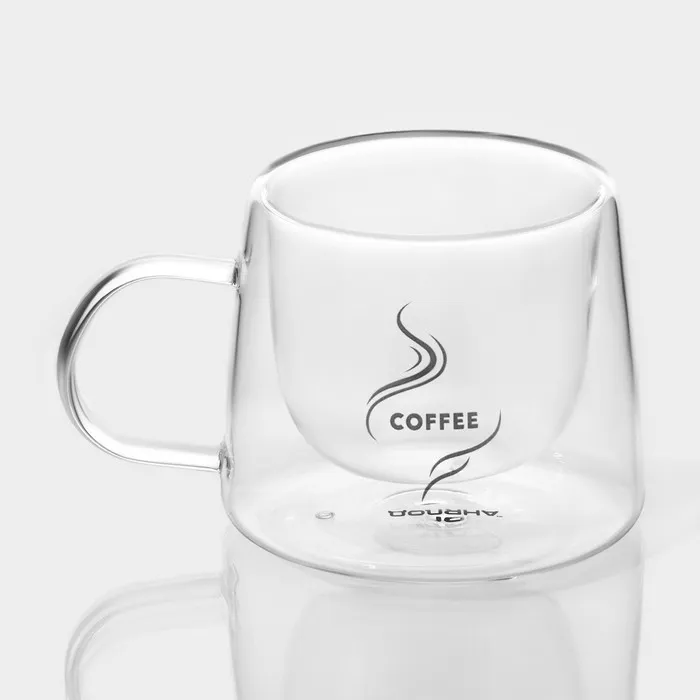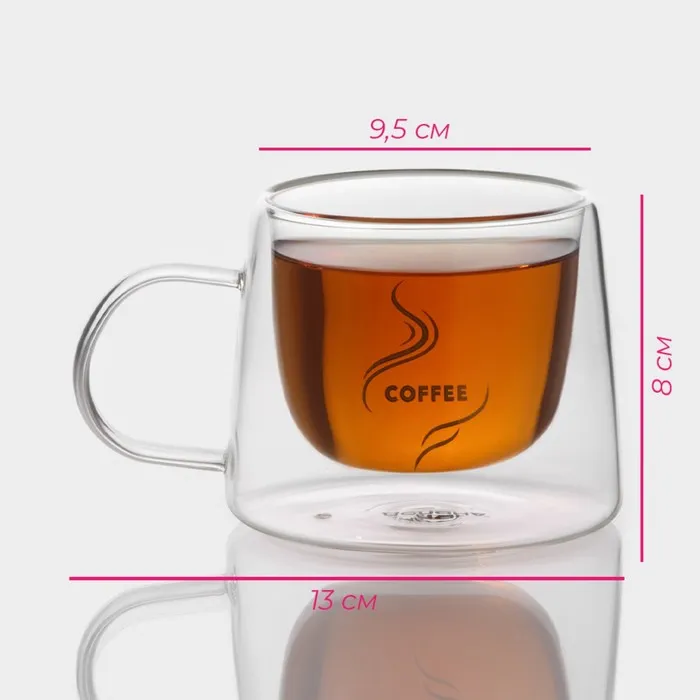 Набор кружек с двойными стенками Доляна «Кофе», 200 мл, 13×9.5×8 см, 2 шт., стекло, прозрачный — Характеристики