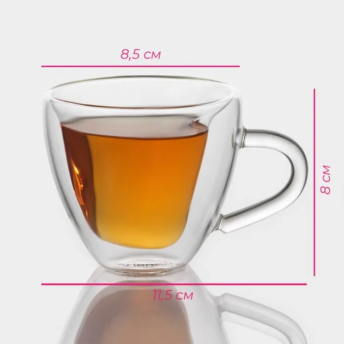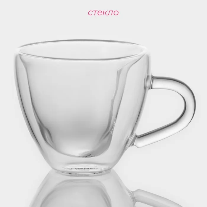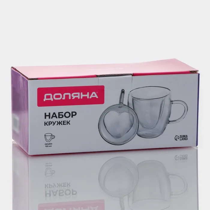 Набор кружек с двойными стенками Доляна «Сердце», 150 мл, 11.5×8.5×8 см, 2 шт., стекло, прозрачный — Характеристики
