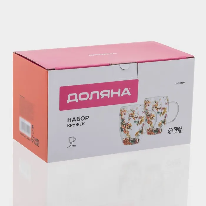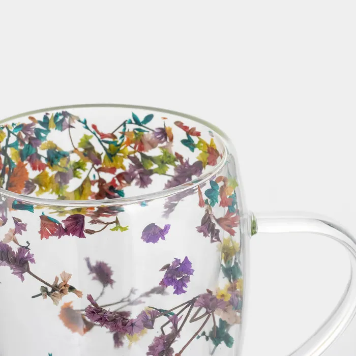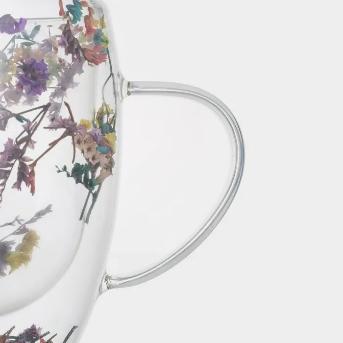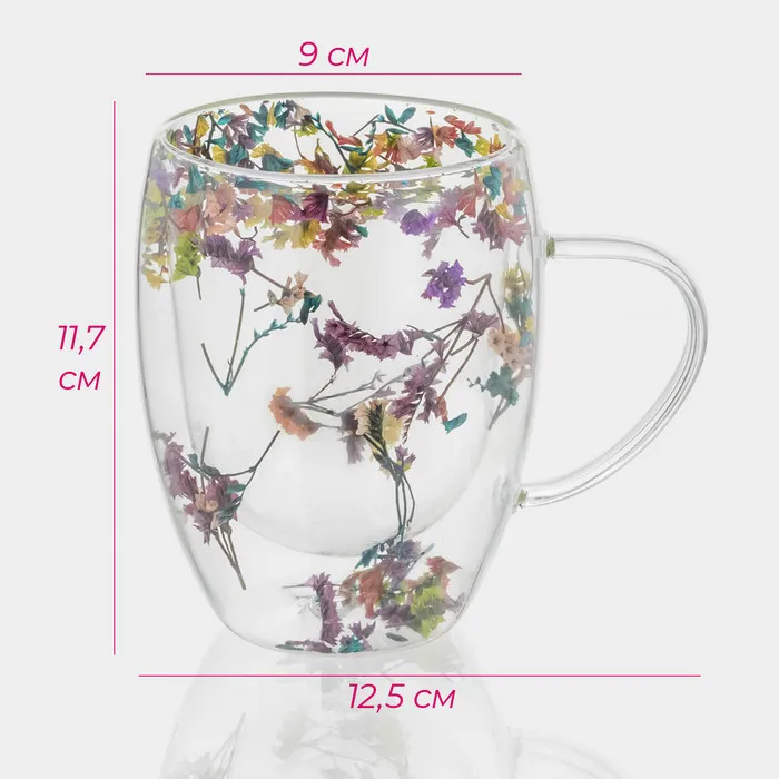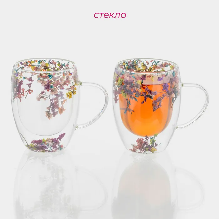 Набор кружек с двойными стенками Доляна «Сухоцвет», 350 мл, 12.5×9×11.7 см, 2 шт., стекло, прозрачный — Характеристики