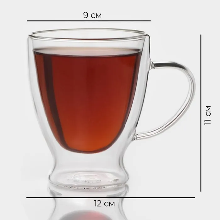 Набор кружек с двойными стенками Magistro «Капучино», 300 мл, 12×9×11 см, 2 шт., стекло, прозрачный — Характеристики