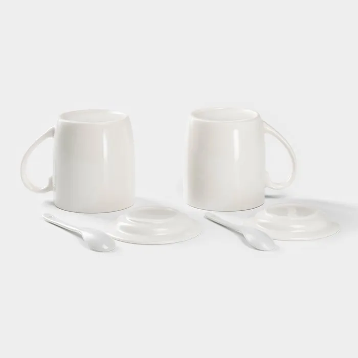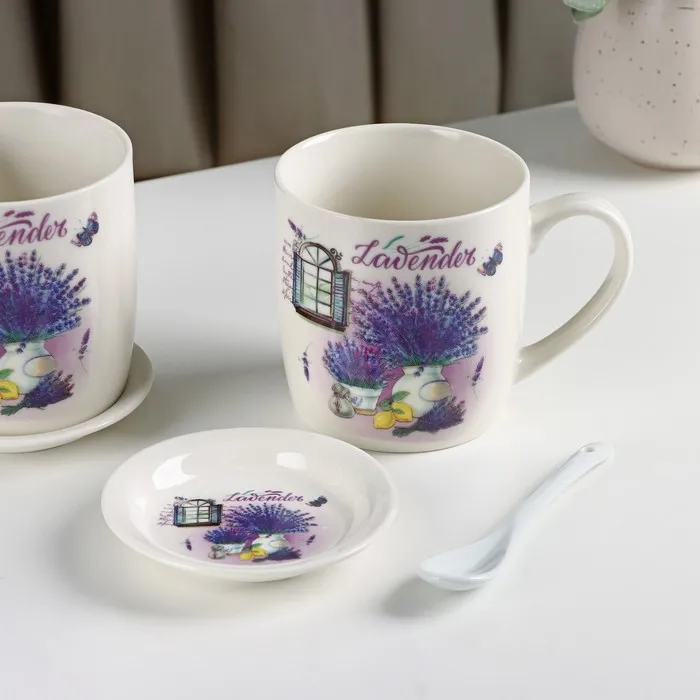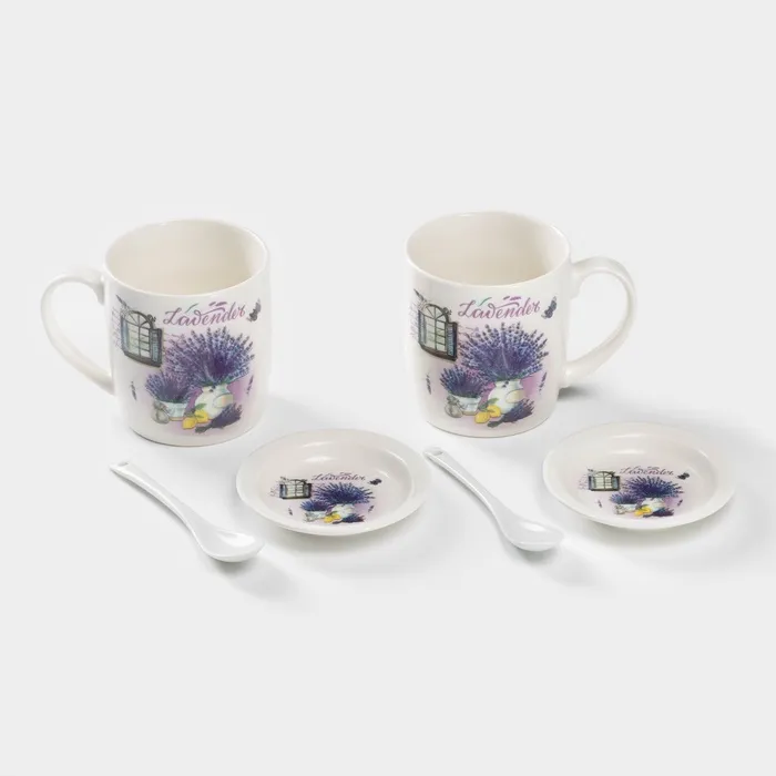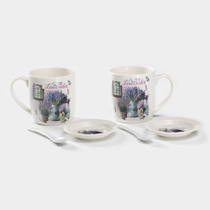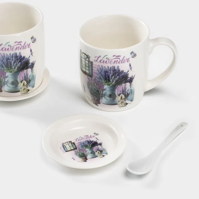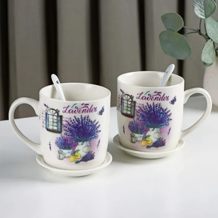 Набор кружек с ложками и подставками «Букет лаванды», 2 предмета: 330 мл, керамика, рисунок МИКС — Характеристики