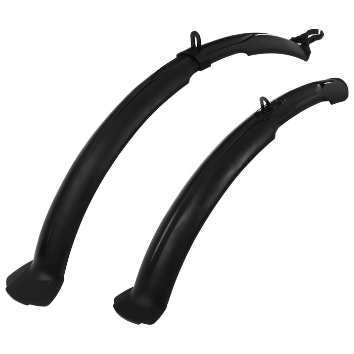 Комплект включает в себя переднее и заднее крыло. Изготовлены из плотного пластика. Удлинённая конструкция с брызговиками обеспечивает улучшенную защиту от грязи и воды.