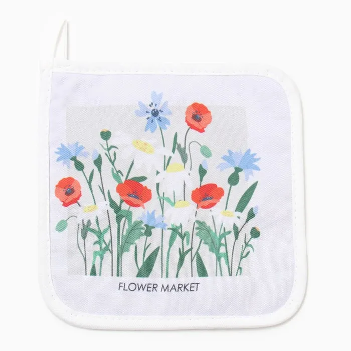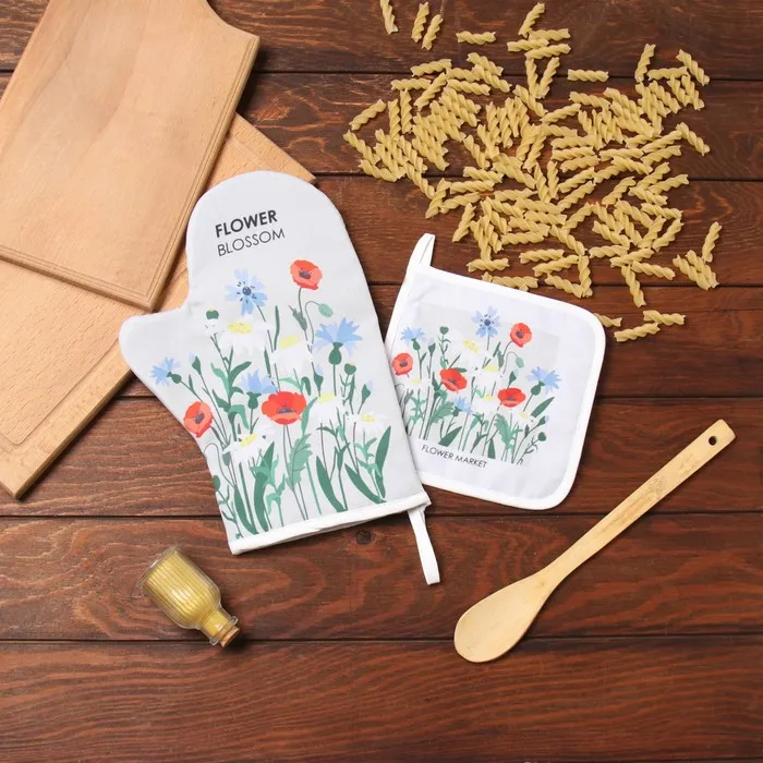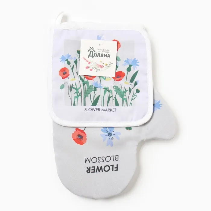 Набор кух. Доляна "Полевые цветы": варежка 20х28 см, прихватка 17х17 см, 35% хл, 65% пэ — Характеристики
