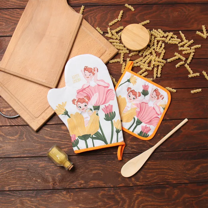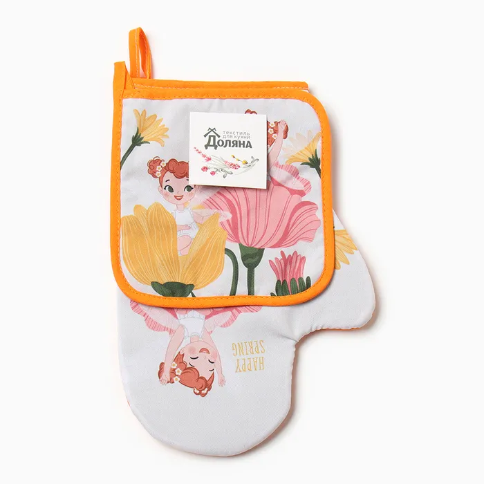 Набор кух. Доляна "Весна": варежка 20х28 см, прихватка 17х17 см, 35% хл, 65% пэ — Характеристики
