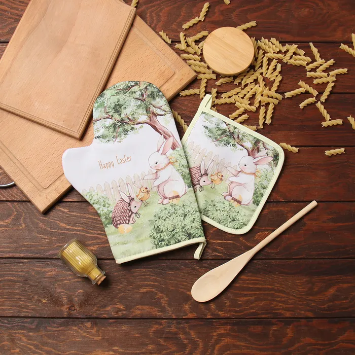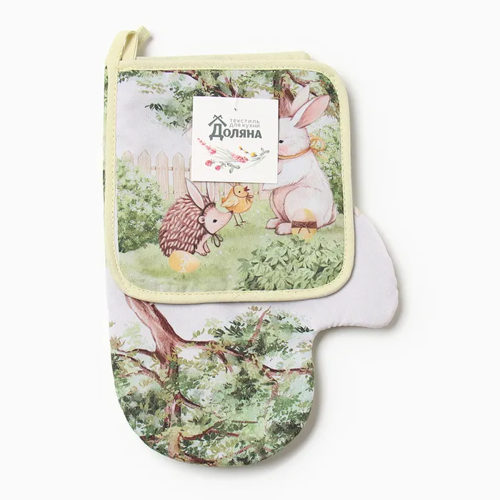 Набор кух. Доляна "Зверьки": варежка 20х28 см, прихватка 17х17 см, 35% хл, 65% пэ — Характеристики