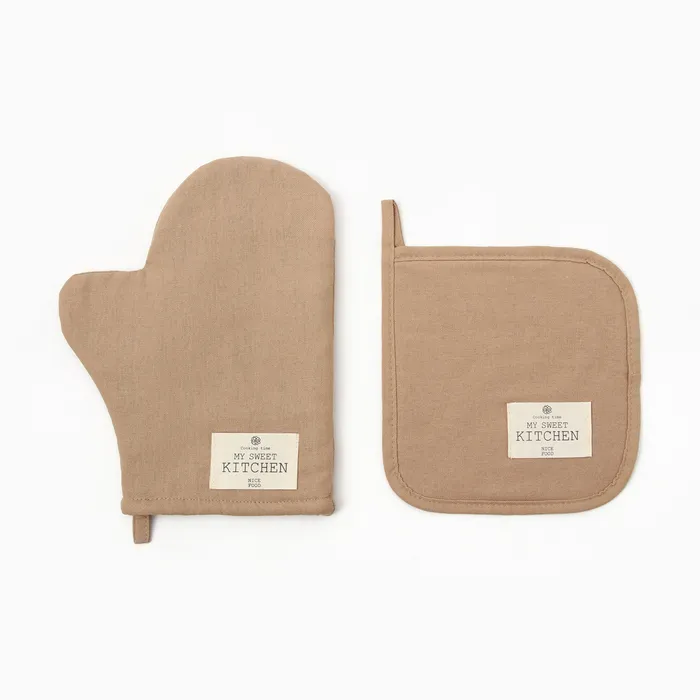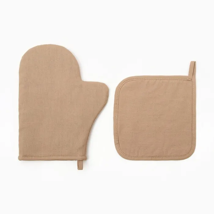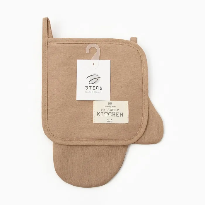 Набор кух. Этель ECO, цв. бежевый: варежка 20х28 см, прихватка 19х19 см, 70% хл, 30% лён, в — Характеристики