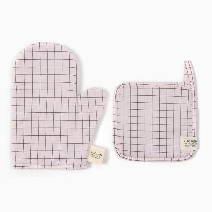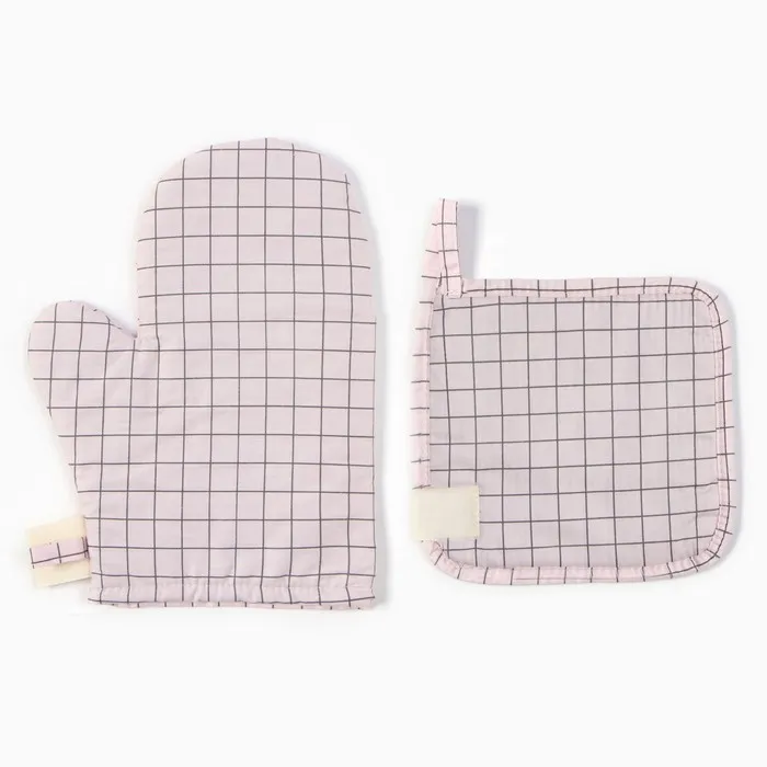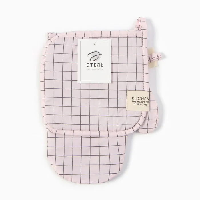 Набор кух. Этель "Клетка": варежка 20х28 см, прихватка 19х19 см, 80% хл, 20% пэ — Характеристики