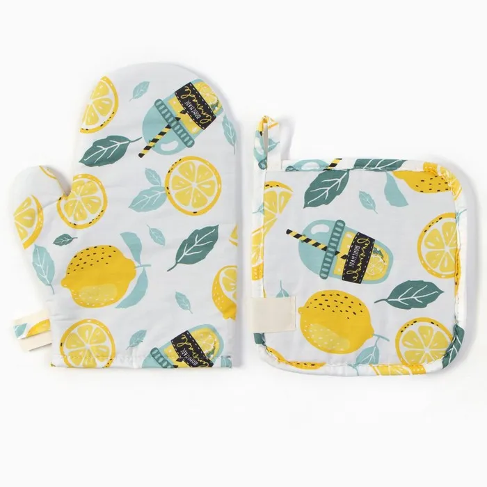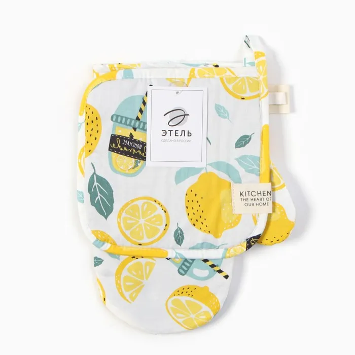 Набор кух. Этель "Лимонад": варежка 20х28 см, прихватка 19х19 см, 80% хл, 20% пэ — Характеристики