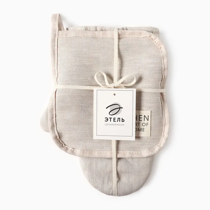 Набор кух. Этель "Magnifica" : варежка 20х28 см, прихватка 19х19 см, лен 100%, 180 гр/м2 — Характеристики