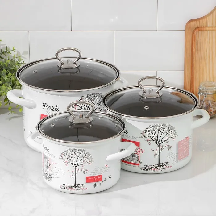 Набор кухонной посуды «Мраморная №3», 6 предметов, крышка, съёмная ручка, антипригарное покрытие, цвет тёмный мрамор — Характеристики