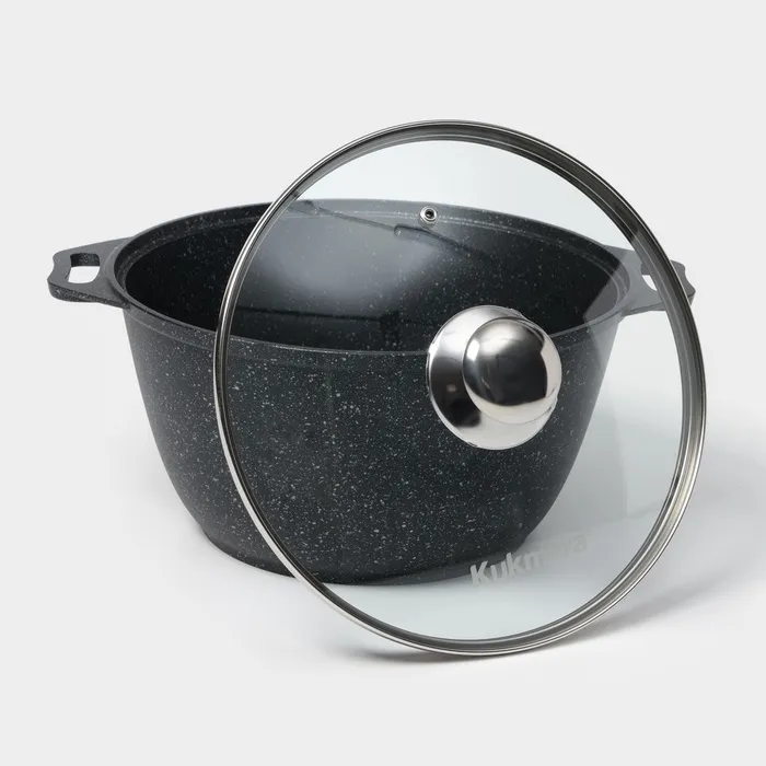Набор кухонной посуды «Мраморная №6», крышка, съёмная ручка, антипригарное покрытие, цвет тёмный мрамор — Характеристики