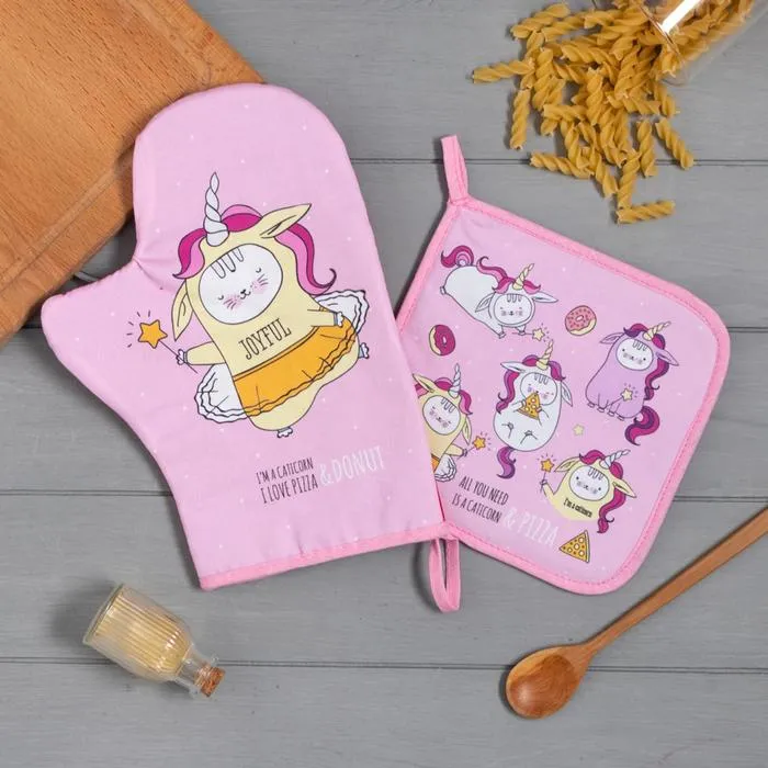 Набор кухонный «Caticorn» варежка-прихватка 20х28см, прихватка 19х19см,100% хлопок — Характеристики