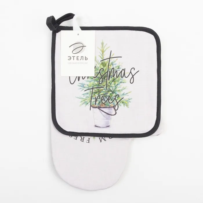 Набор кухонный «Christmas trees» варежка-прихватка 20х28 см, прихватка 19х19 см, 100% хлопок — Характеристики