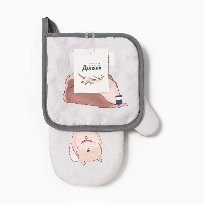 Набор кухонный "Cofee&dogs" варежка-прихватка 20х27см, прихватка 17х17см 100% п/э — Характеристики