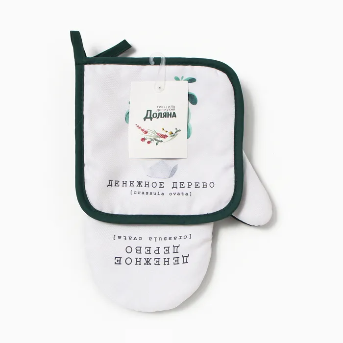 Набор кухонный "Денежное дерево" варежка-прихватка 20х27см, прихватка 17х17см 100% п/э — Характеристики