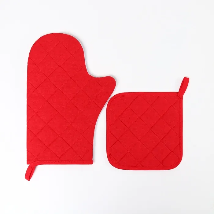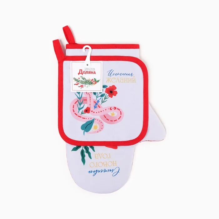 Набор кухонный Доляна "Исполнения желаний": прихватка 17х17 см, Варежка-прихватка новогодняя 20х28 см, 35%х