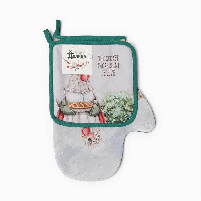 Набор кухонный Доляна "Курочка": варежка 20х28 см, прихватка 17х17 см, 35% хлопок, 65% п/э — Характеристики