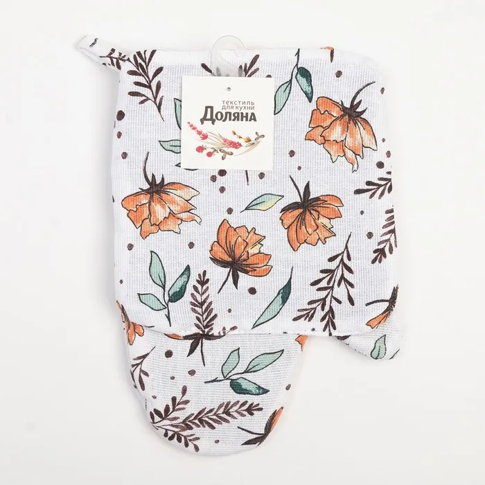 Набор кухонный Доляна Oleander: варежка 20х27 см, прихватка 19х19 см, 100% хлопок — Характеристики