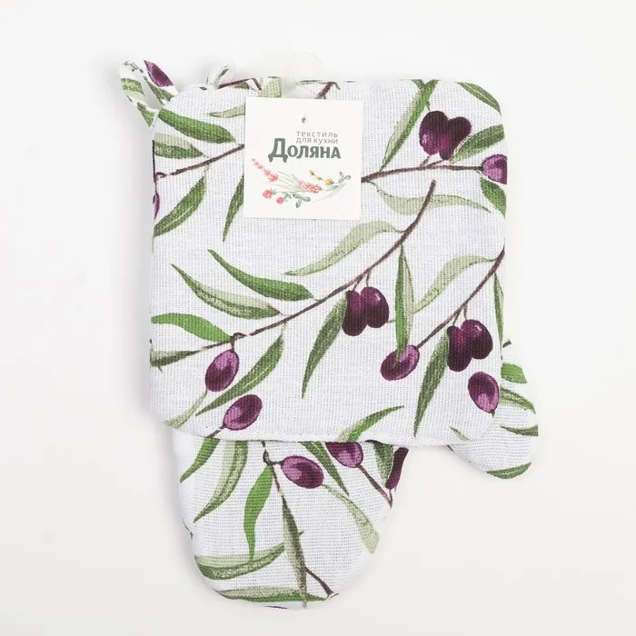 Набор кухонный Доляна Olives: варежка 20х27 см, прихватка 19х19 см, 100% хл — Характеристики