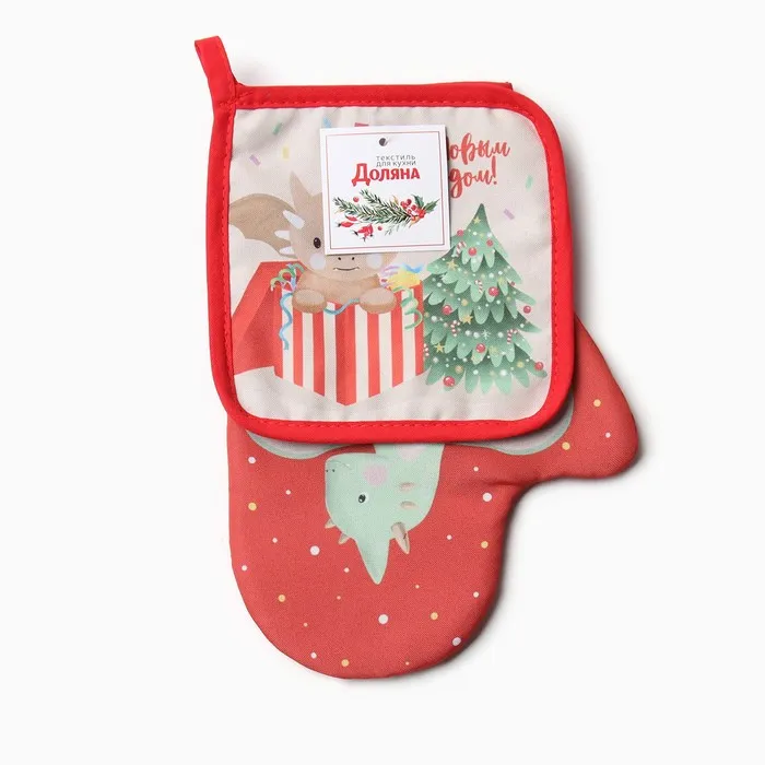 Набор кухонный Доляна "Подарок": варежка 20х28 см, прихватка 17х17 см, 35% хлопок, 65% пэ — Характеристики