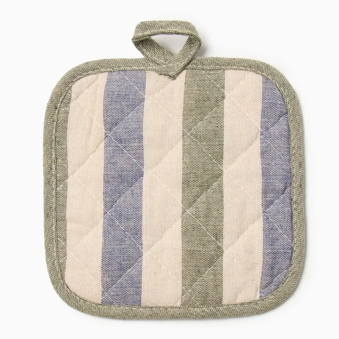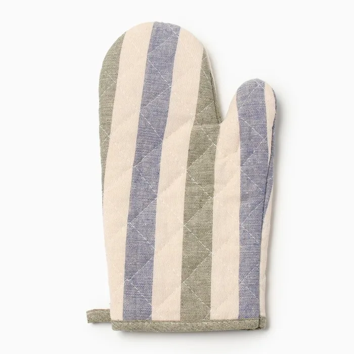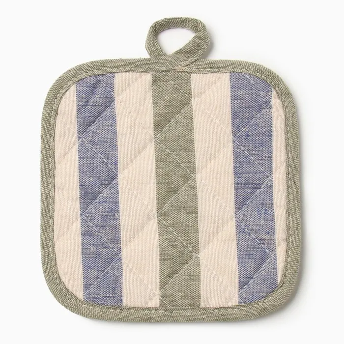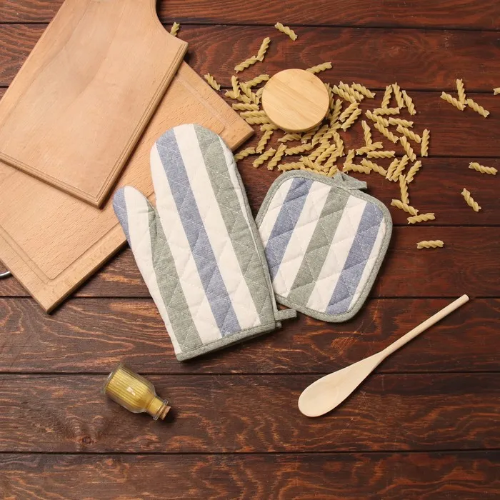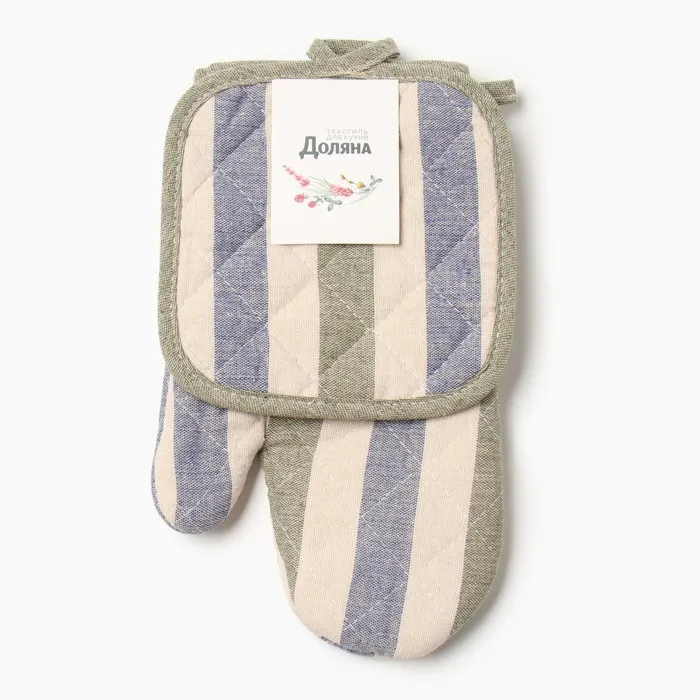 Набор кухонный Доляна, полоса син/зел, варежка-прихватка 28×17 см, прихватка 17×17 см, 50% п/э, 50% хлопок
