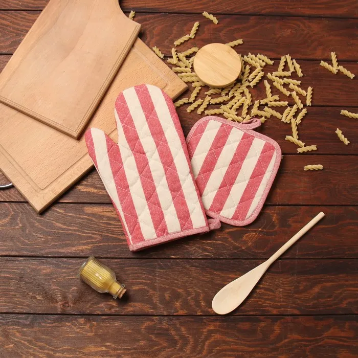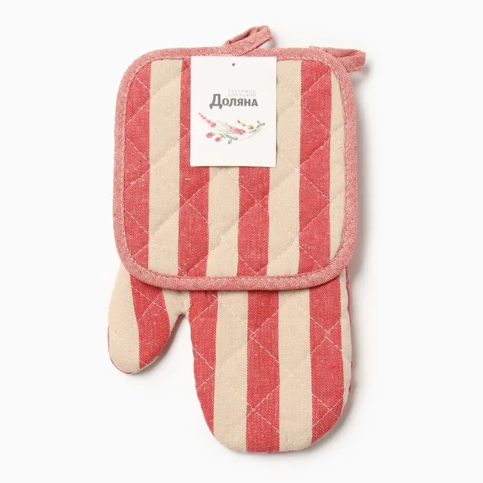 Набор кухонный Доляна Полоса цвет красный,варежка-прих.28х17см, прихватка 17х17 50% п/э 50% хлопок — Характеристики