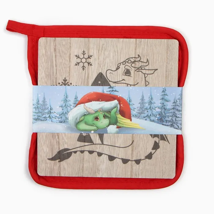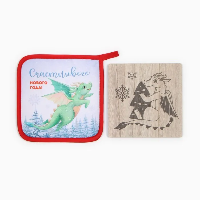 Набор кухонный Доляна Счастливого НГ!: подставка 15*15 см, прихватка 17*17см — Характеристики