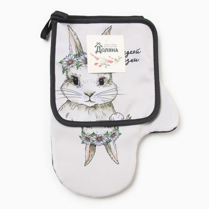 Набор кухонный Доляна "Сладкой жизни": варежка 20х28 см, прихватка 17х17 см, 35% хлопок, 65% п/э — Характеристики