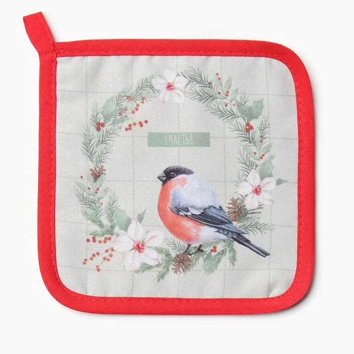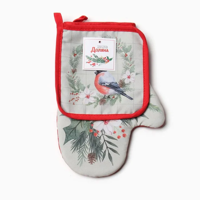 Набор кухонный Доляна "Снегирь": варежка 20х28 см, прихватка 17х17 см, 35% хл, 65% пэ — Характеристики