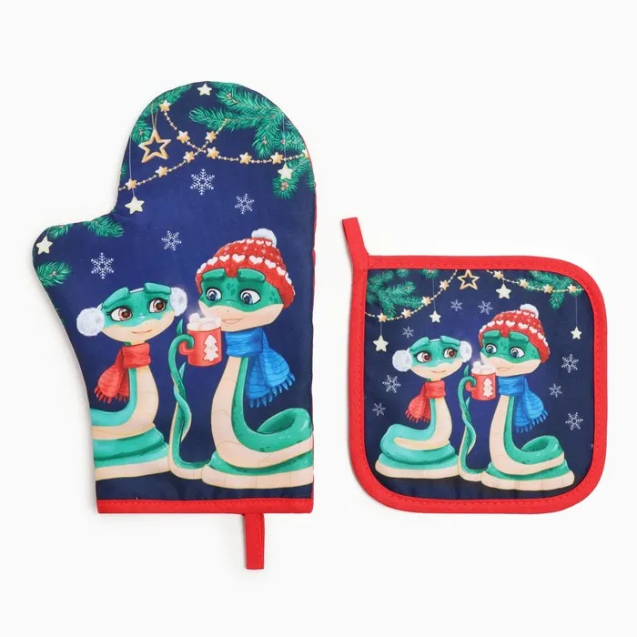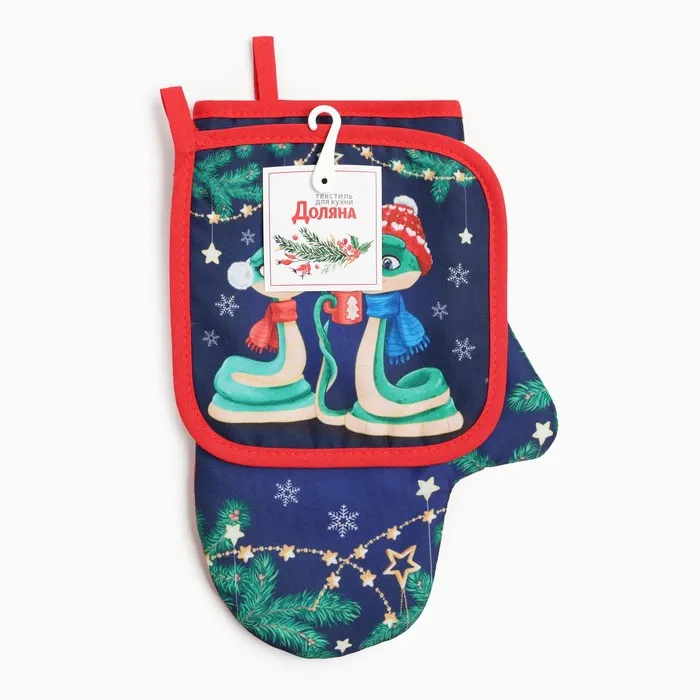 Набор кухонный Доляна "Теплых объятий": прихватка 17х17 см, Варежка-прихватка новогодняя 20х28 см, 35% хлопок — Характеристики